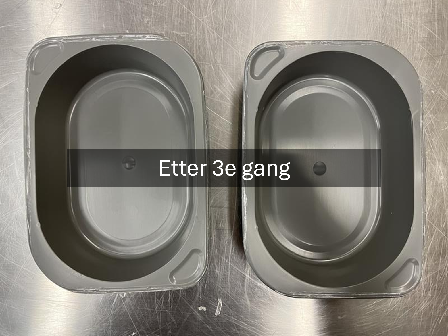 Skålenes tekniske egenskaper vurderes som tilstrekkelige for videre pilotering, forutsatt at formsett optimaliseres. Spørsmålet om forbrukeraksept knyttet til visuell slitasje gjenstår å undersøke.